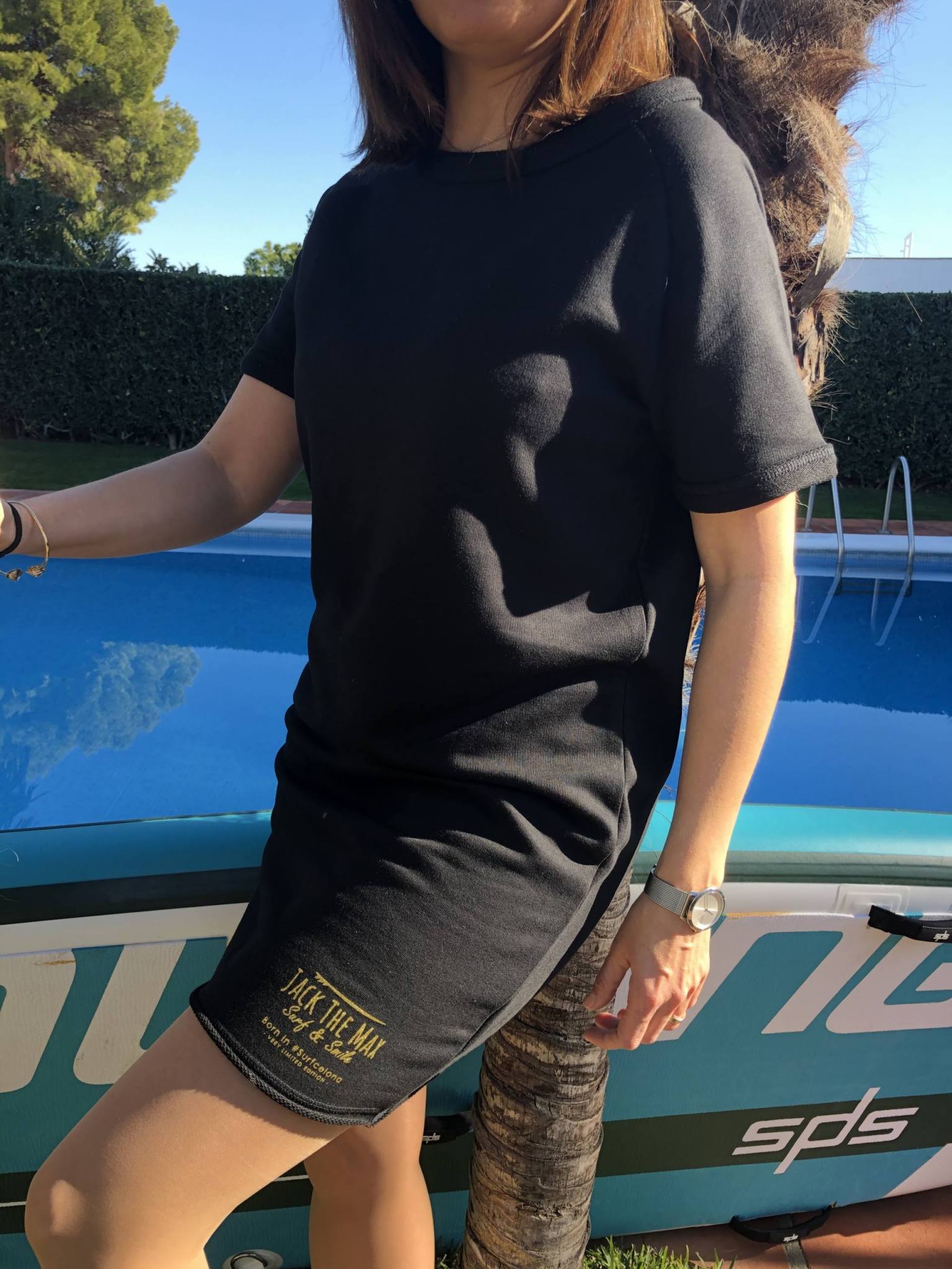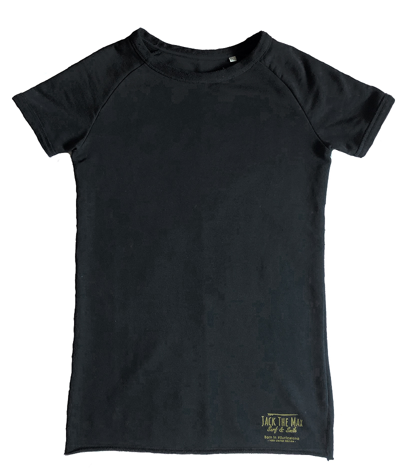 Vestido sudadera manga corta confeccionado en tejido de sudadera 85% ALGODÓN ORGÁNICO hilado y peinado y 15% POLIÉSTER para estar comprometidos con nuestro planeta.