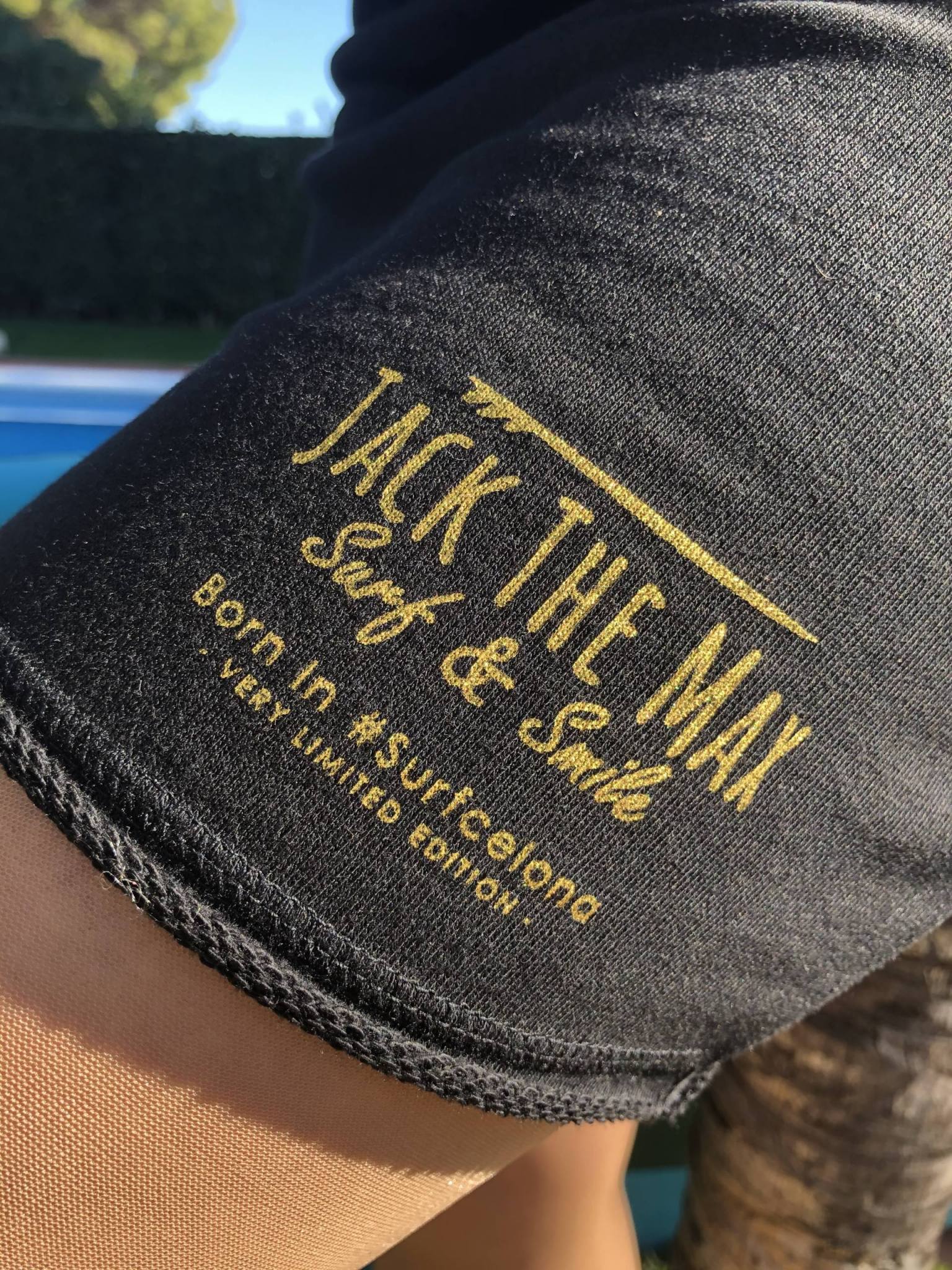 El vestido sudadera está estampado en oro con el logo de Jack The Max en la parte inferior delantero y en el interior cuello en gris.