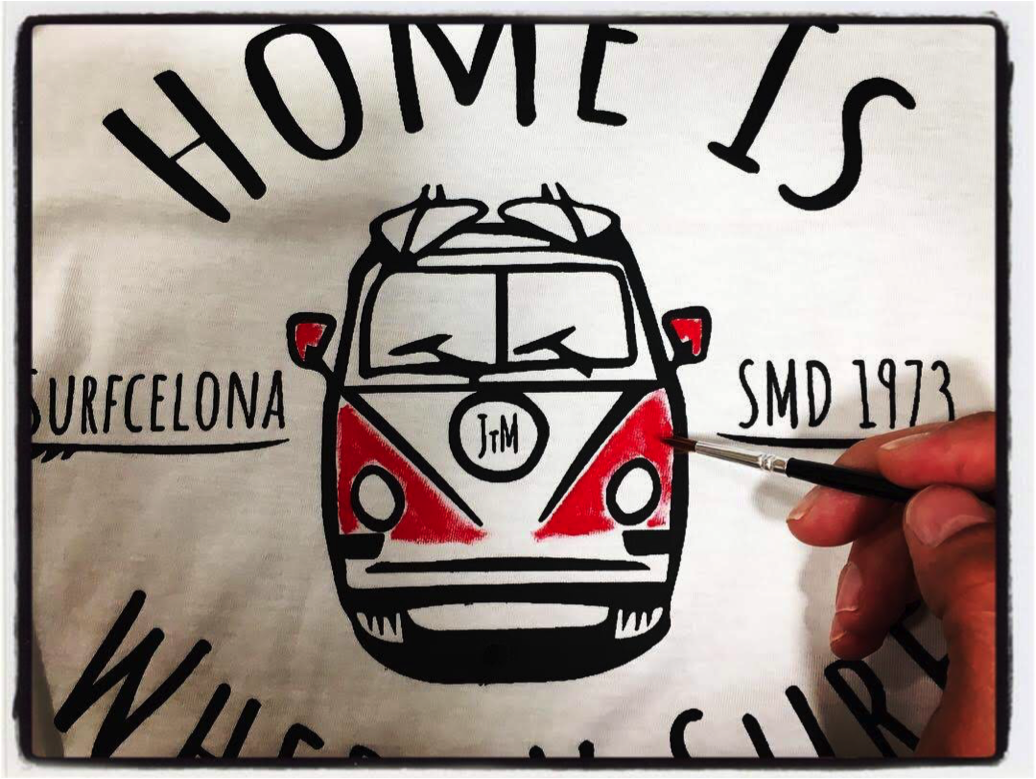 Cada camiseta está estampada a mano por el creador de la marca, Santiago “Jack The Max” Moritz usando exclusivamente tintas acramina ecológicas de base agua. La acramina es una tinta que una vez aplicada el tejido la absorbe, por lo que al tacto no tiene relieve ni da la sensación de plástico como la tinta PLASTISOL.