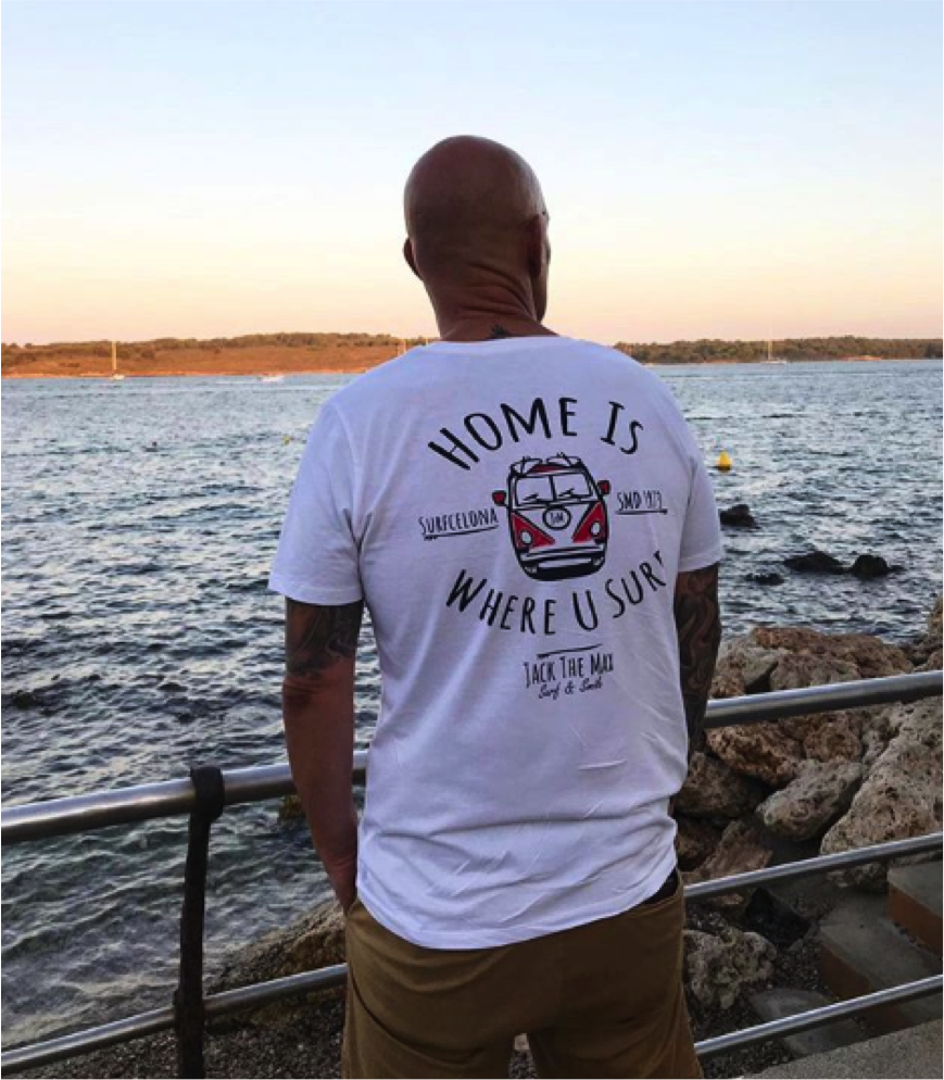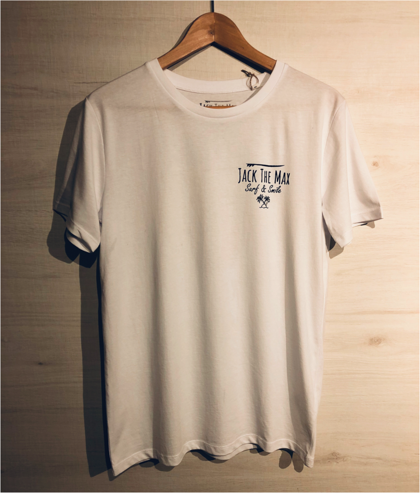 La camiseta “SURF VAN” está serigrafiada en el pecho izquierdo con el logo de Jack The Max.